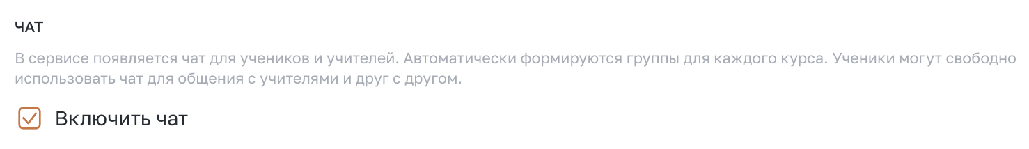 Настройки школы - Основное - Другие настройки - Чат