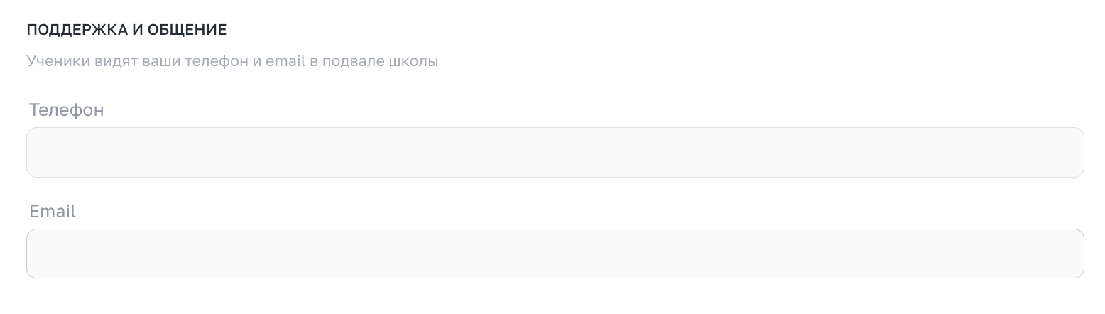 Указанные данные (только телефон, только email, или все сразу) будут отображаться в правом нижнем углу подвала от лица ученика.
